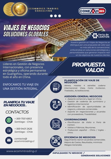 La globalización ha abierto un sinfín de oportunidades para empresas que buscan expandirse internacionalmente. En Ecommerce Trading, te ofrecemos asesorías personalizadas en Business Travel, diseñadas para maximizar el impacto de tus viajes de negocio, con un enfoque especial en mercados clave como China.
